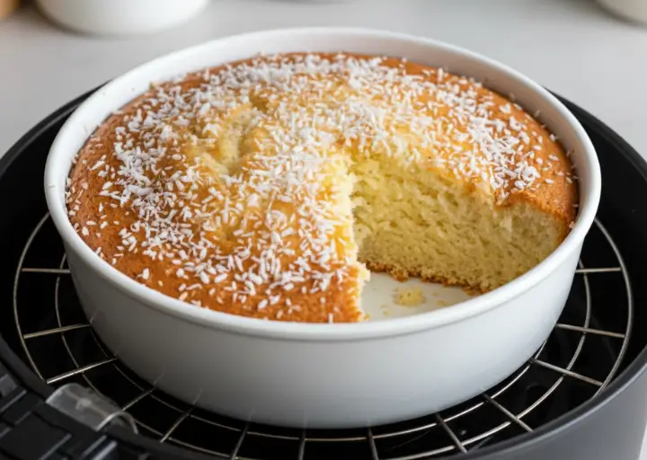 Dia 10 de 30 dias de lanches saudáveis — e olha, o de hoje é um espetáculo! Esse bolo de coco com iogurte na airfryer é aquele tipo de receita que conquista pela simplicidade e pela textura leve, fofinha, de derreter na boca.