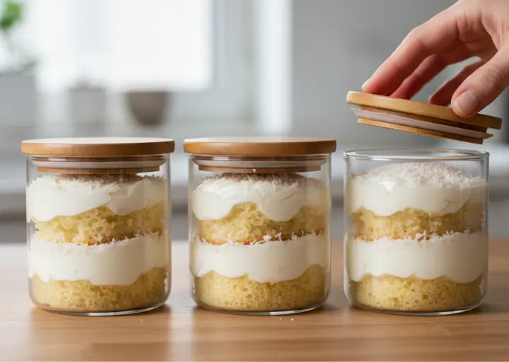 - Monte os bolinhos no pote, finalize com leite em pó e leve à geladeira por 2 horas.